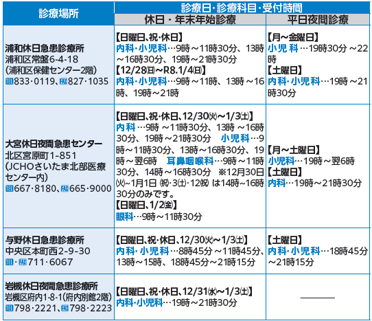 くらし 休日・夜間救急診療 49/59 前の記事 次の記事 発行日 : 2025年12月01日 自治体名 : 埼玉県さいたま市 広報紙名 : 市報さいたま 2025年12月号 ※休日・夜間急患診療所では、休日や夜間に緊急で治療が必要な方の診療を行っています。なお、混雑時は診療所駐車場に駐車できないことがあります。 Tweet シェアする 寄付ありがとうございました 在宅当番医