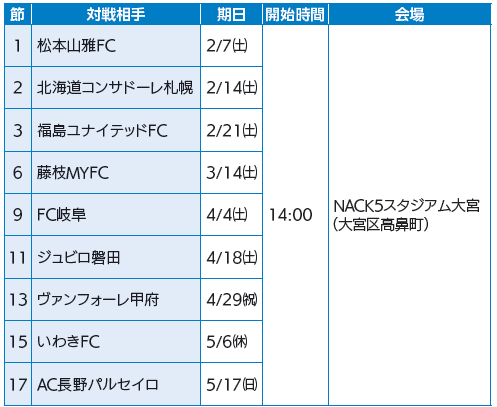 ※日程はいずれもホームゲームです。試合日程等は変更になる場合があります。詳細は、各クラブのホームページなどでご確認ください。
