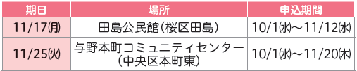申込み:各申込期間に、電話で、さいたまコールセンター(【電話】835・3156(8時~21時))へ。