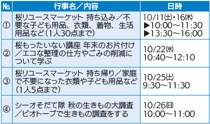 (1)・(2)…(1)は10月3日(金)~13日(祝)、(2)は10月8日(水)~16日(木)のいずれも10時~16時(12時~13時30分を除く)に、電話で、桜環境センター(桜区新開)へ。