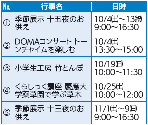 休館日:月曜日(10月13日(祝)、11月3日(祝)を除く)、10月14日(火)、11月4日(火)