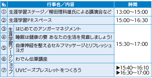 内容:生涯学習相談、生涯学習情報の提供、公民館等で活動する団体・サークルの紹介など