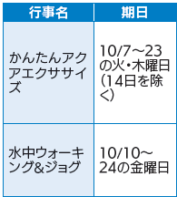 会場・申込み・問合せ:10月3日(金)から、直接又は電話で、下落合プール(中央区下落合)へ。