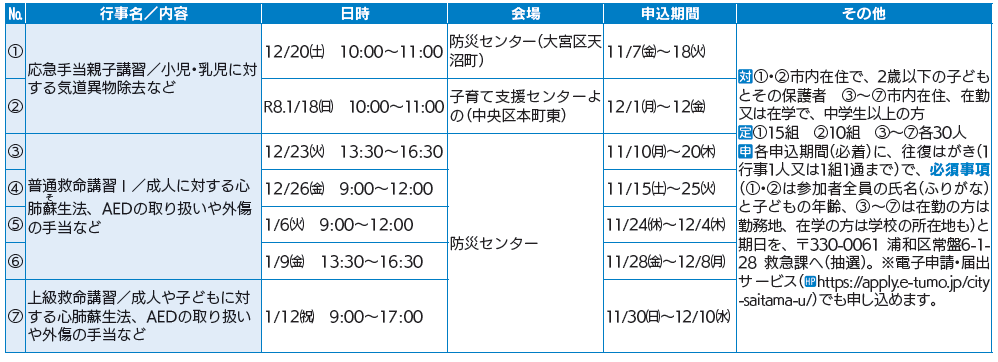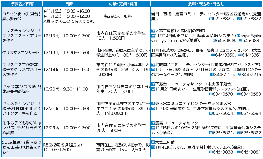 ※その他の行事は、(公財)市文化振興事業団のホームページ(【HP】https://saitama-culture.jp/)でご覧になれます。