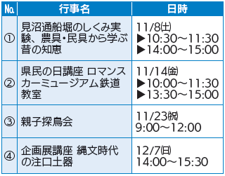 (2)~(4)…(2)・(3)は11月5日(水)、(4)は11月15日(土)のいずれも9時から、電話で、同館へ。