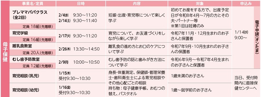 ・母子保健の各教室の参加は、お一人のお子さんに対し1回のみです