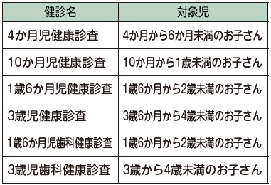 乳幼児健康診査は、子どもの健康状態や発育・発達を定期的に確認するだけでなく、育児でわからないことや心配なこと等を相談できる大切な機会です。