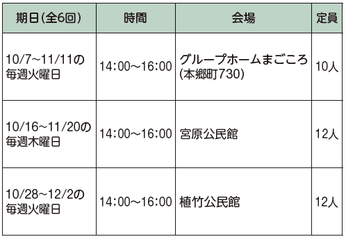 健康 ますます元気教室 参加者募集 3/19 前の記事 次の記事 発行日 : 2025年09月01日 自治体名 : 埼玉県さいたま市北区 広報紙名 : 市報さいたま 北区版 2025年9月号 内容:筋力アップの効果が期待できる「いきいき百歳体操」や、口腔ケア、栄養改善、認知症予防などを学ぶ 対象:市内在住で、65歳以上の方(応募多数の場合は抽せん) 申込み:9月19日(金)までに、北区高齢介護課又は各公民館で配布する申込書に記入し、直接又はファクスで、北区高齢介護課又は会場となる公民館へ。電子申請・届出サービスからも申込みができます。 問合せ:北区高齢介護課 【電話】669・6068【FAX】669・6167 Tweet シェアする 大宮盆栽村100周年記念イベントを開催します 区役所の休日窓口をご利用ください(支所・市民の窓口を除く)