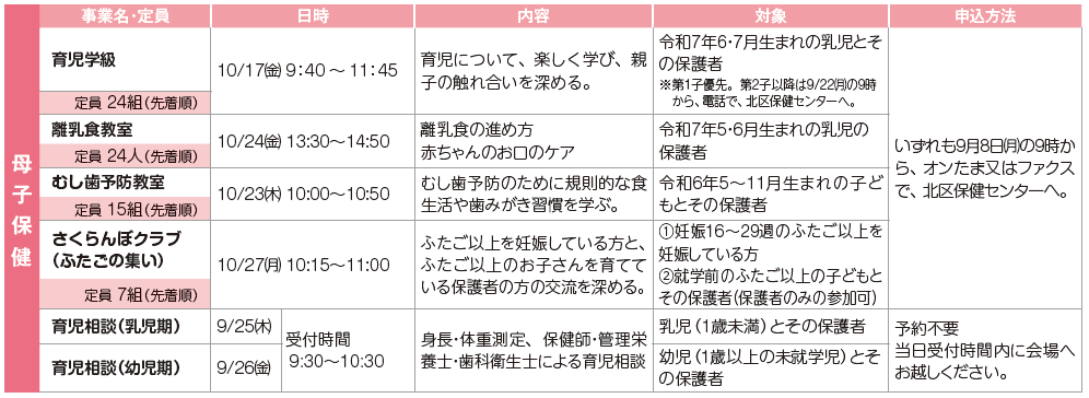 ・母子保健の各学級の参加は、1人の子どもに対し1回のみです。
