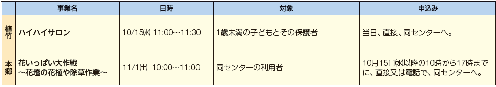 子育て 児童センター 14/21 前の記事 次の記事 発行日 : 2025年10月01日 自治体名 : 埼玉県さいたま市北区 広報紙名 : 市報さいたま 北区版 2025年10月号 センターだよりは、ホームページでも確認できます。【HP】http://www.saicity-j.or.jp/tayori.html 植竹児童センター 〒331-0805盆栽町430 【電話・FAX】652・3247 本郷児童センター 〒331-0802本郷町1065-3 【電話・FAX】664・7551 Tweet シェアする 図書館 コミュニティセンター