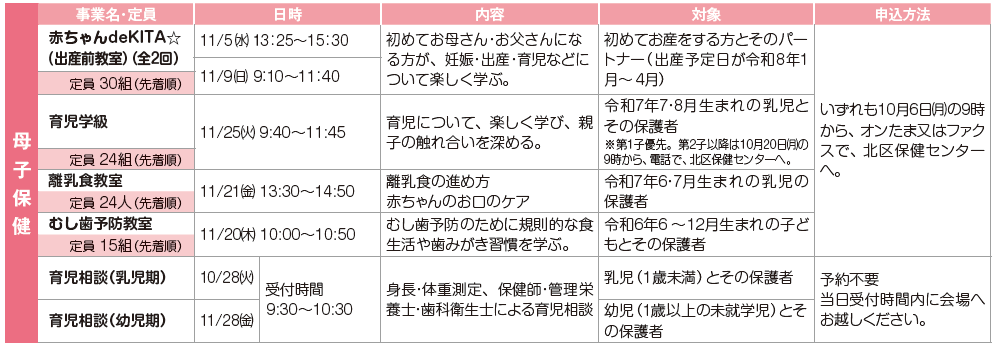 ・母子保健の各学級の参加は、1人の子どもに対し1回のみです。