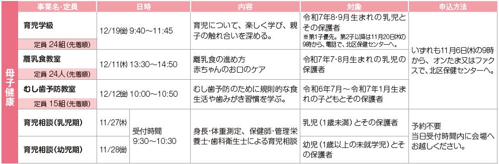 ・母子保健の各学級の参加は、1人の子どもに対し1回のみです。