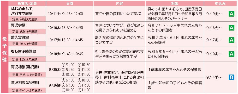 ・申込みは、各指定日9時からで、区内在住の方が対象です。ファクスの場合は、(1)事業名(2)住所(3)氏名(ふりがな)(4)電話番号またはファクス番号を記入してください。