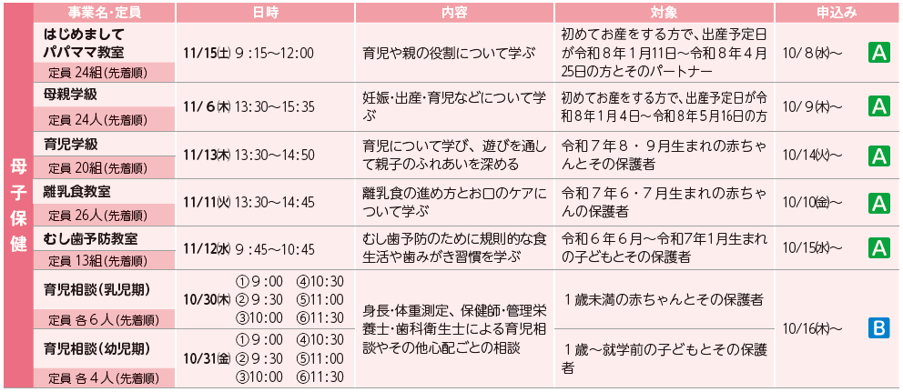 ・申込みは、各指定日9時からで、区内在住の方が対象です。ファクスの場合は、(1)事業名(2)住所(3)氏名(ふりがな)(4)電話番号またはファクス番号を記入してください。