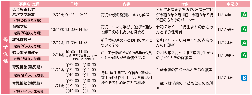 生後1~2か月くらいまでの赤ちゃんとその母親(里帰り出産で期間内に市内に居住している方も含む)を対象に、助産師又は保健師が訪問による育児相談を行っています。母子健康手帳別冊に添付の「出生連絡票」の訪問希望「有」に〇をつけ郵送又は電話でお申込みください。