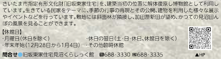 くらし 旧坂東家住宅見沼くらしっく館(片柳1266-2) 1/16 次の記事 発行日 : 2026年01月01日 自治体名 : 埼玉県さいたま市見沼区 広報紙名 : 市報さいたま 見沼区版 2026年1月号 Tweet シェアする さいたま市自治会活動功労者表彰式が開催されました