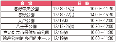 ※会場変更や中止になる場合があります。