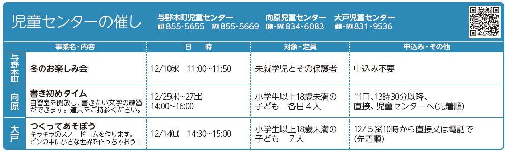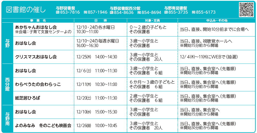 ・その他のイベント等については、市ホームページ又は各問合せ先へお問い合わせください。