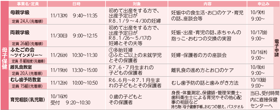 ・母子保健の各教室の参加は子ども1人に対し1回のみです。