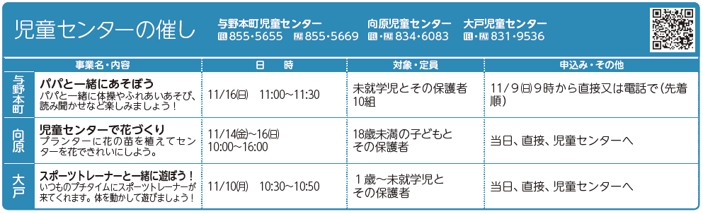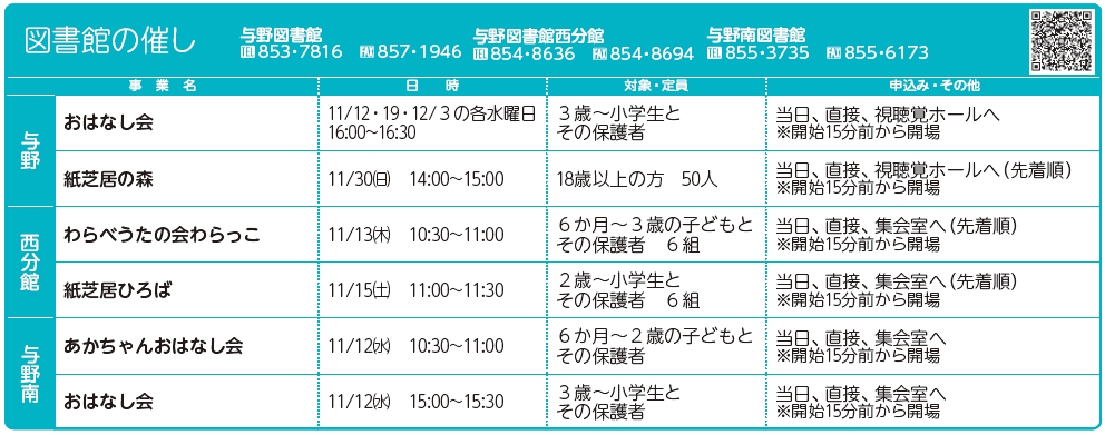 ・その他のイベント等については、市ホームページ又は各問合せ先へお問い合わせください。