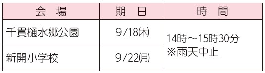 小学校や公園に設置された遊具を使って無理なく運動します。初めて参加する方も、日頃運動をしていない方も大歓迎です。当日、直接、会場へお越しください。