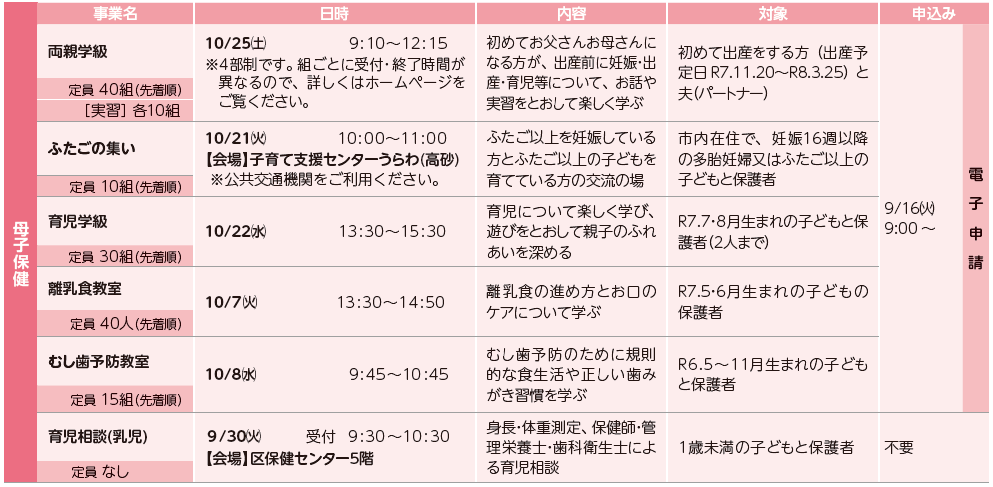 申込先の記載がない事業は、浦和区保健センターへお申し込みください。