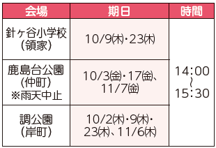 健康 すこやか運動教室 7/16 前の記事 次の記事 発行日 : 2025年10月01日 自治体名 : 埼玉県さいたま市浦和区 広報紙名 : 市報さいたま 浦和区版 2025年10月号 会場内の遊具を使った運動です。 対象:おおむね65歳以上の方 ※自宅で検温・体調確認のうえ、ご参加ください。 問合せ:区高齢介護課 【電話】829・6153【FAX】829・6238 Tweet シェアする こんにちは区長です 浦和区文化の小径(こみち)マップ(2025年改訂版)ができました