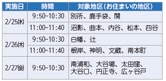 日時:お住まいの地区により異なります。(下表のとおり)