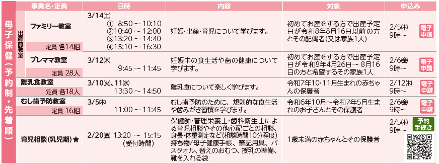 ※母子保健の各教室は、親子1組につき1回参加することができます。