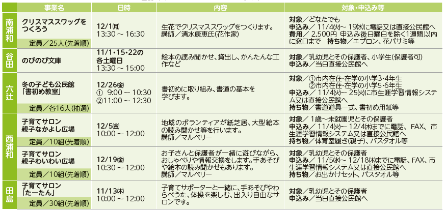 ・中止や内容を変更する場合があります。詳しくは、市ホームページを確認又は各施設へお問い合わせください。