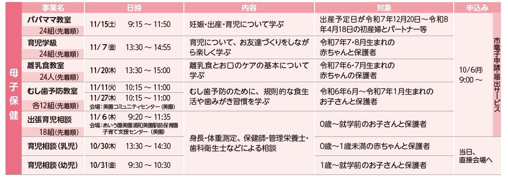 ・各母子保健教室の参加は、お子さん一人に対し1回のみです。