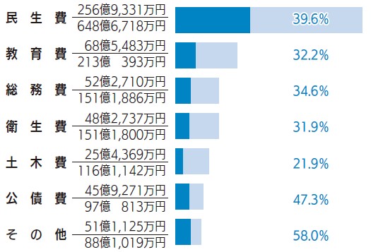 民生費…児童、高齢者、障害のある方のための各種福祉施策や運営、生活保護の実施等のための経費