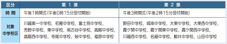 *中学校区による住所地で下表のとおり2部に振り分けます。指定された部にお越しください。