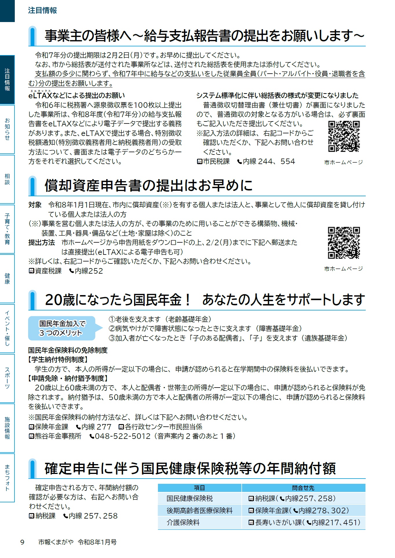 くらし 市報くまがや 2026年1月号 vol.244 P.9 9/32 前の記事 次の記事 発行日 : 2026年01月01日 自治体名 : 埼玉県熊谷市 広報紙名 : 市報くまがや 2026年1月号 vol.244 Tweet シェアする 市報くまがや 2026年1月号 vol.244 P.8 市報くまがや 2026年1月号 vol.244 P.10