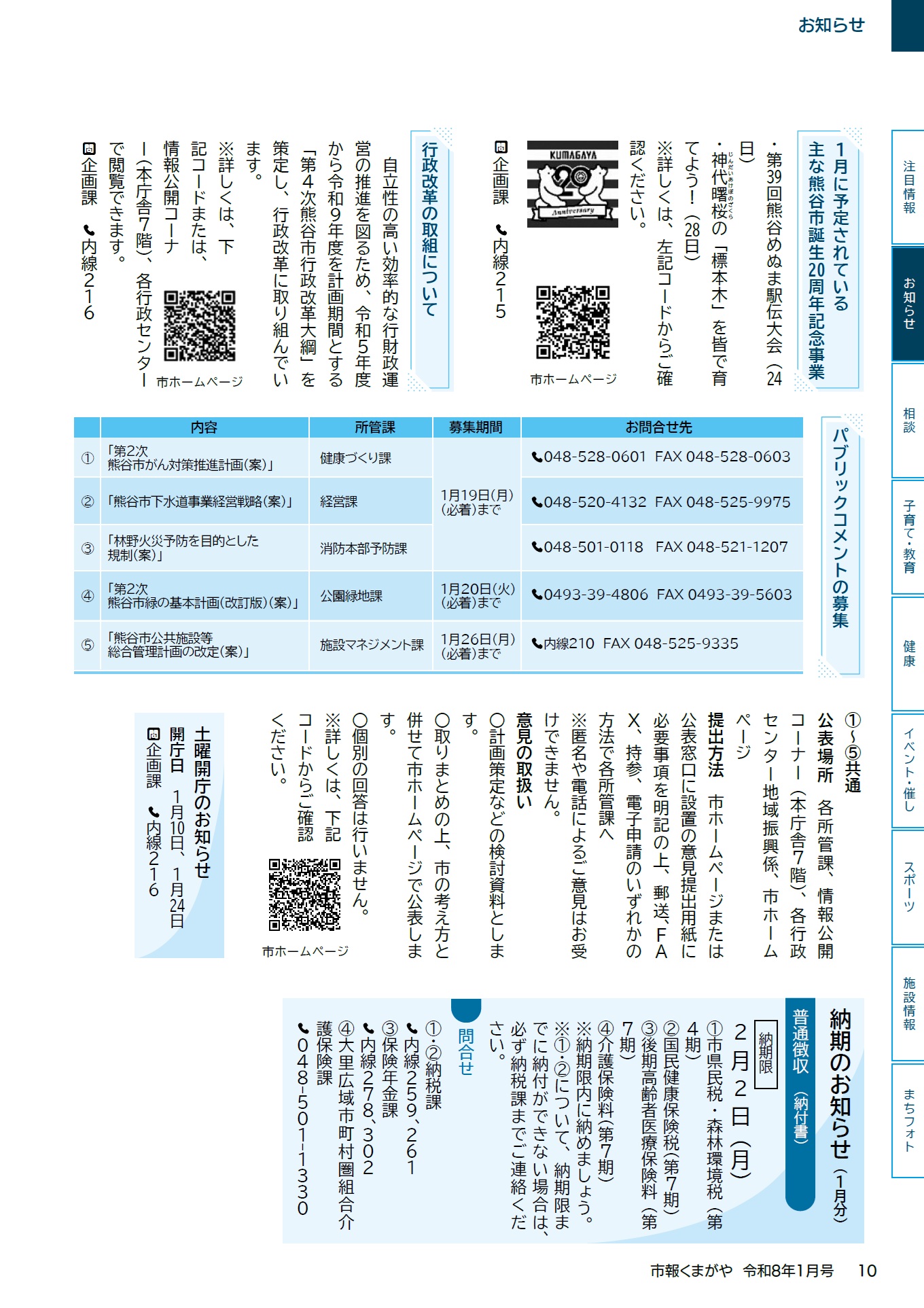 くらし 市報くまがや 2026年1月号 vol.244 P.10 10/32 前の記事 次の記事 発行日 : 2026年01月01日 自治体名 : 埼玉県熊谷市 広報紙名 : 市報くまがや 2026年1月号 vol.244 Tweet シェアする 市報くまがや 2026年1月号 vol.244 P.9 市報くまがや 2026年1月号 vol.244 P.11