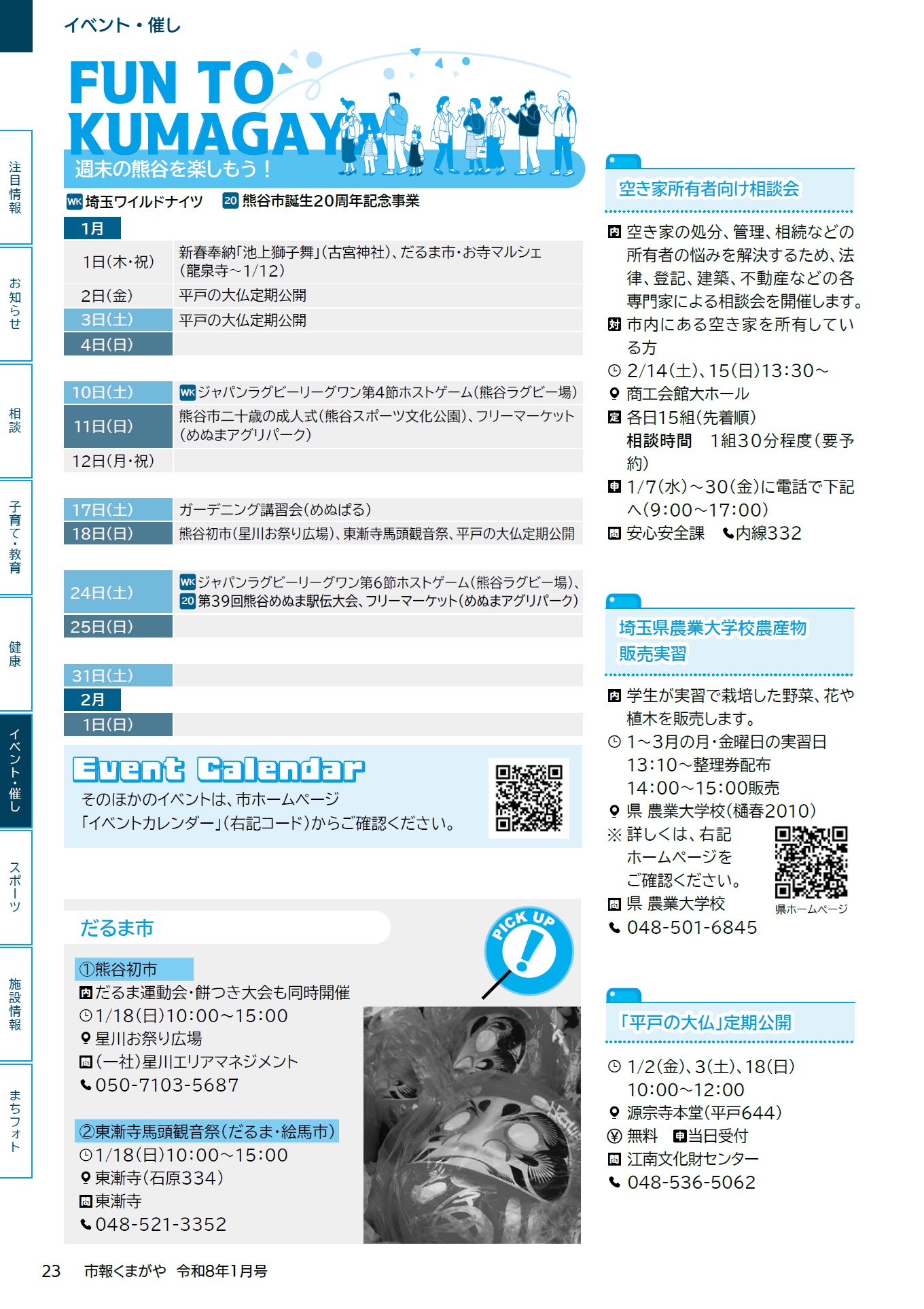 イベント 市報くまがや 2026年1月号 vol.244 P.23 23/32 前の記事 次の記事 発行日 : 2026年01月01日 自治体名 : 埼玉県熊谷市 広報紙名 : 市報くまがや 2026年1月号 vol.244 Tweet シェアする 市報くまがや 2026年1月号 vol.244 P.22 市報くまがや 2026年1月号 vol.244 P.24