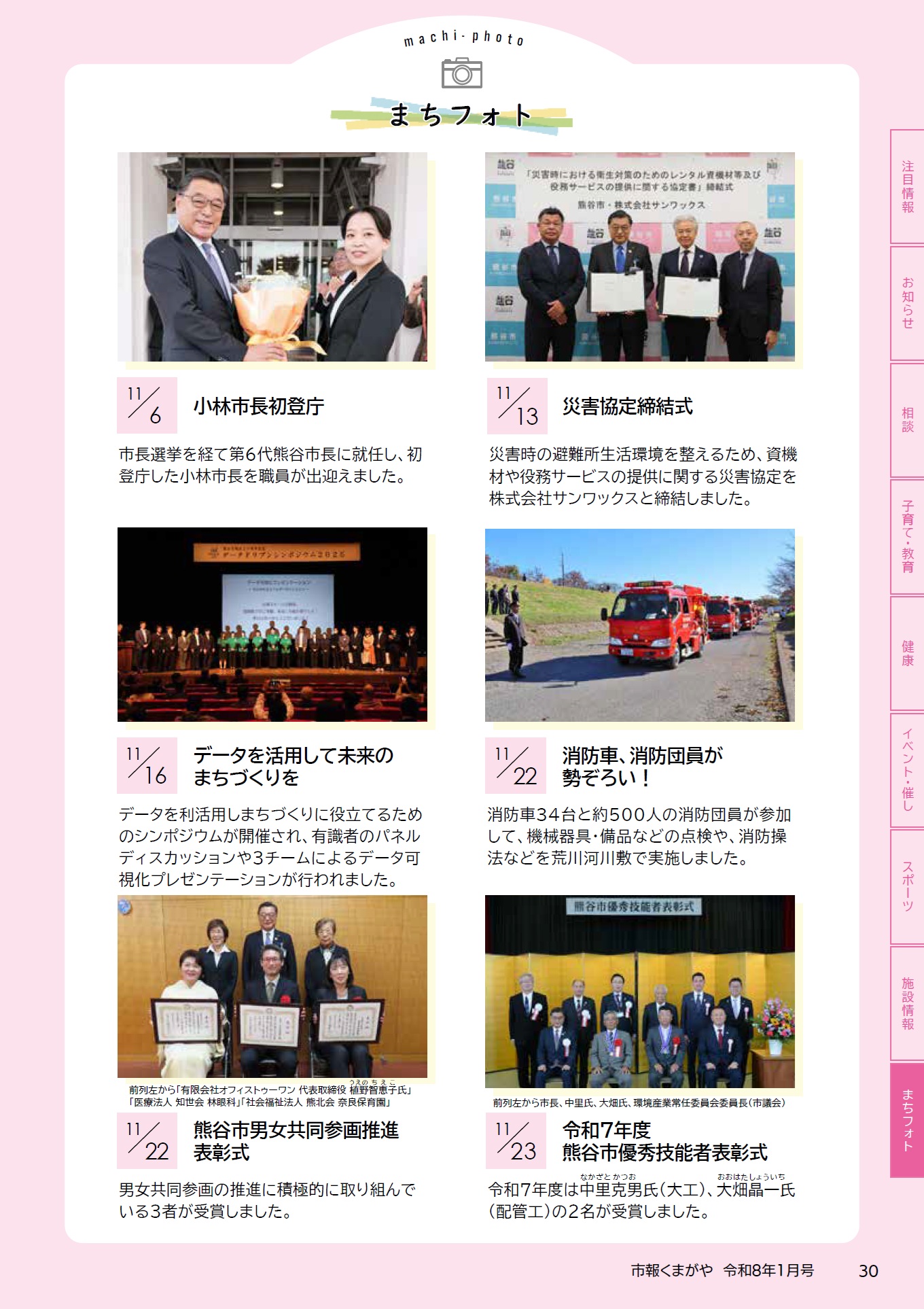 くらし 市報くまがや 2026年1月号 vol.244 P.30 30/32 前の記事 次の記事 発行日 : 2026年01月01日 自治体名 : 埼玉県熊谷市 広報紙名 : 市報くまがや 2026年1月号 vol.244 Tweet シェアする 市報くまがや 2026年1月号 vol.244 P.29 市報くまがや 2026年1月号 vol.244 P.31