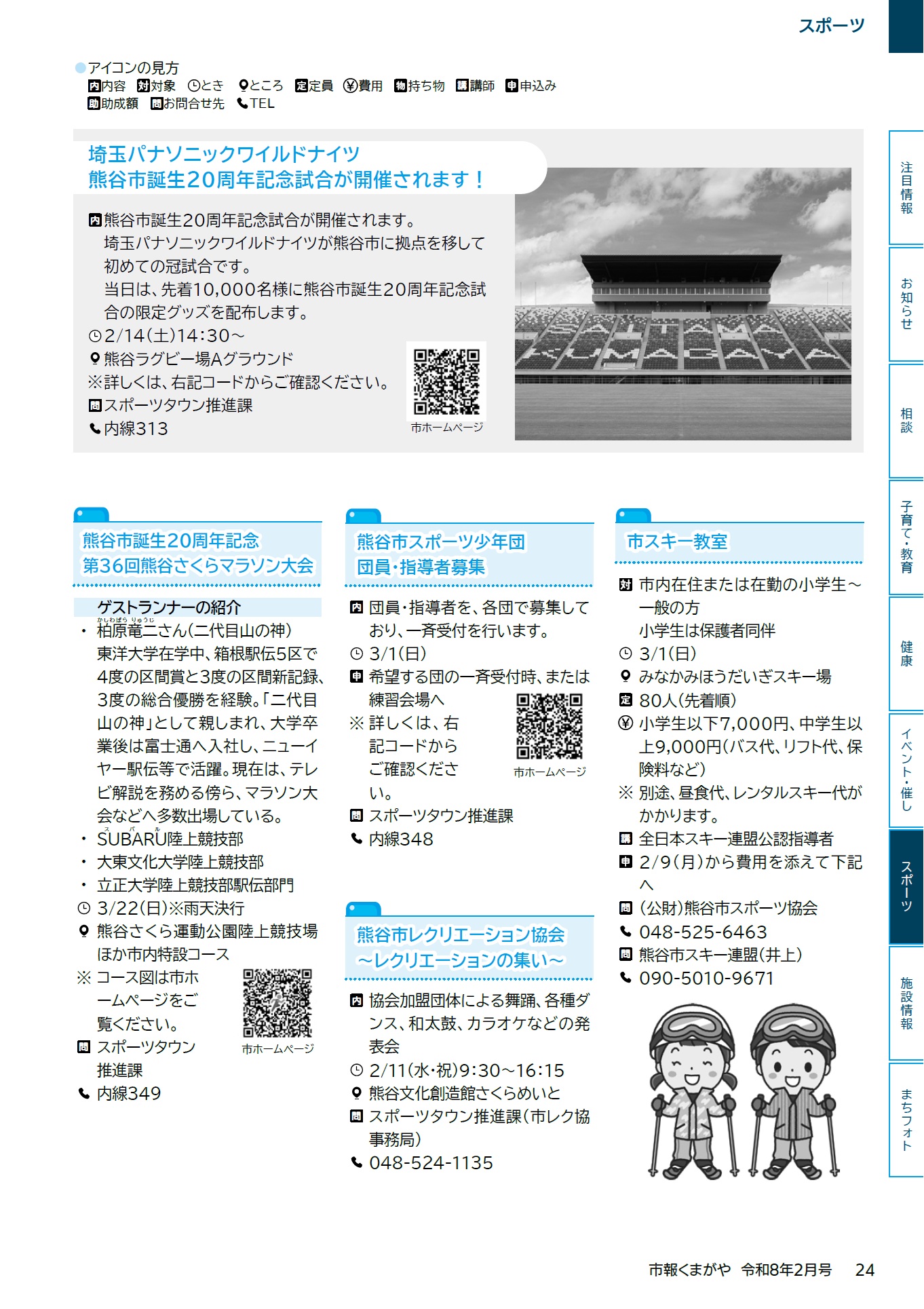 スポーツ 市報くまがや 2026年2月号 vol.245 P.24 24/32 前の記事 次の記事 発行日 : 2026年02月01日 自治体名 : 埼玉県熊谷市 広報紙名 : 市報くまがや 2026年2月号 vol.245 Tweet シェアする 市報くまがや 2026年2月号 vol.245 P.23 市報くまがや 2026年2月号 vol.245 P.25