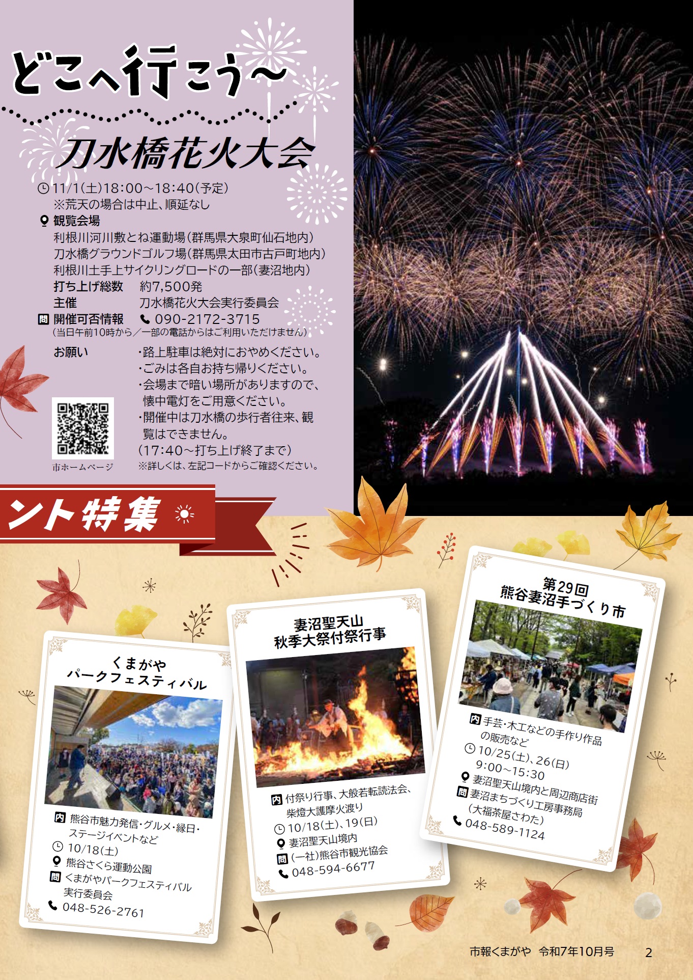 イベント 市報くまがや 2025年10月号 vol.241 P.2 2/32 前の記事 次の記事 発行日 : 2025年10月01日 自治体名 : 埼玉県熊谷市 広報紙名 : 市報くまがや 2025年10月号 vol.241 Tweet シェアする 市報くまがや 2025年10月号 vol.241 表紙 市報くまがや 2025年10月号 vol.241 P.3