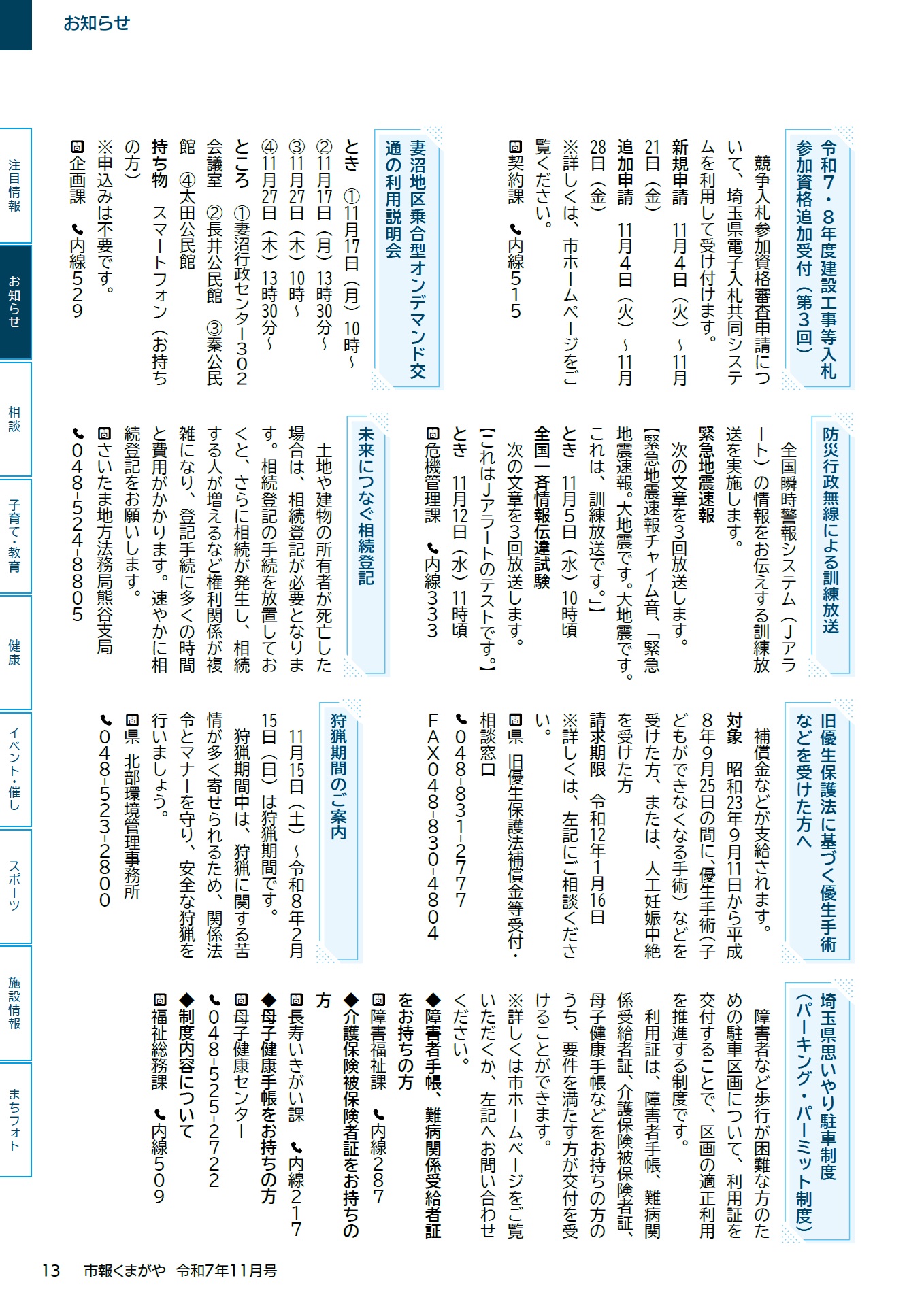 くらし 市報くまがや 2025年11月号 vol.242 P.13 13/32 前の記事 次の記事 発行日 : 2025年11月01日 自治体名 : 埼玉県熊谷市 広報紙名 : 市報くまがや 2025年11月号 vol.242 Tweet シェアする 市報くまがや 2025年11月号 vol.242 P.12 市報くまがや 2025年11月号 vol.242 P.14