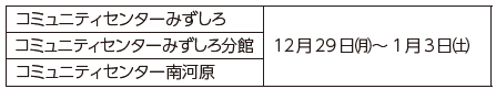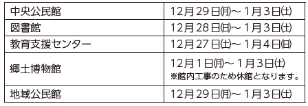 ■市役所および関連施設の年末年始の休業・休館