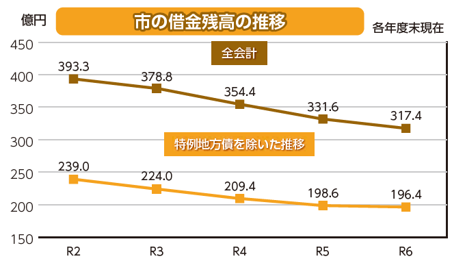 なお、令和6年度については、市債の返済額が新規発行額を上回ったため、市債残高は減少しています。