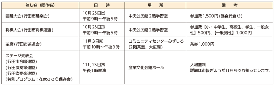 問い合わせ:埼玉県芸術文化祭行田市実行委員会事務局(生涯学習課内)
