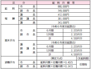 (6)特別職の報酬等の状況(令和7年4月1日現在)