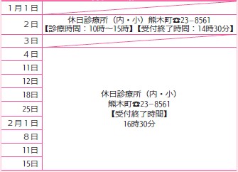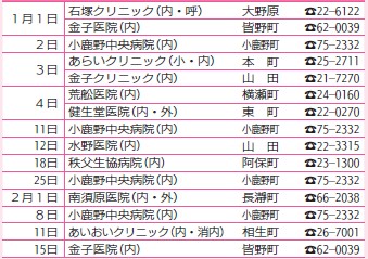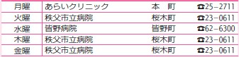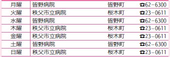 ※医療機関の都合で変更になることがあります。秩父消防本部(【電話】21-0119)にご確認ください。