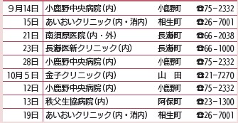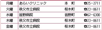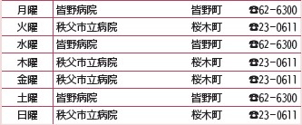 ※医療機関の都合で変更になることがあります。秩父消防本部(【電話】21-0119)にご確認ください。