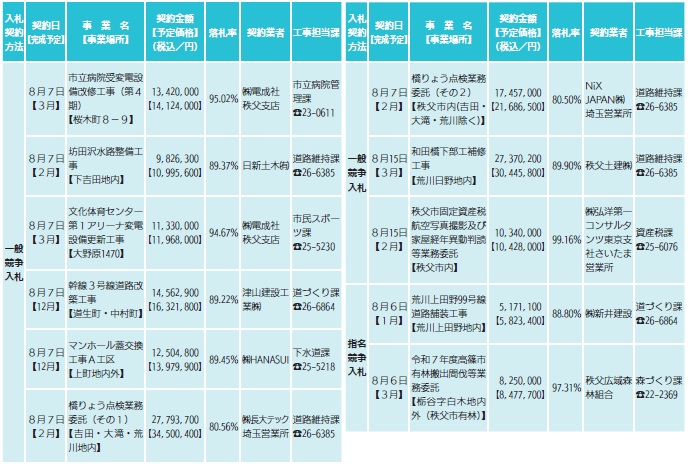 しごと 公共工事の入札結果 29/51 前の記事 次の記事 発行日 : 2025年10月10日 自治体名 : 埼玉県秩父市 広報紙名 : 市報ちちぶ 令和7年10月号 (税込500万円以上) Tweet シェアする がんばる商店街! 秩父市の人口