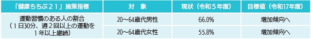 「健康ちちぶ21(第3次)」では、施策指標の具体的な取り組みを推進しています。