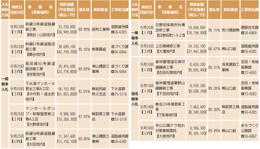 しごと 公共工事の入札結果 22/48 前の記事 次の記事 発行日 : 2025年11月10日 自治体名 : 埼玉県秩父市 広報紙名 : 市報ちちぶ 令和7年11月号 (税込500万円以上) 問合せ: ・工事の内容…表中の工事担当課 ・契約関係…契約課【電話】25-5216 Tweet シェアする 秩父宮記念市民会館 自主事業 11月は児童虐待防止推進月間 体罰は「やむを得ない」と思っていますか?