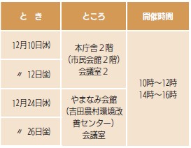 日時:12月13日(土)・20日(土)13時~16時